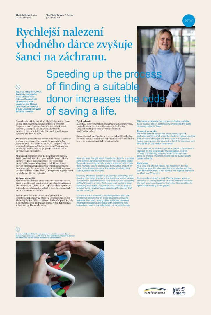 „Od malička jsem díky své rodině měla blízko k technice a učení se novému. Mým vysněným povoláním byl ‚věčný student‘ a výzkum mi to na 100 % splnil,“ říká vědkyně Lucie Houdová z Fakulty aplikovaných věd Západočeské univerzity v Plzni, v jejíž práci se potkává informatika s medicínou. Pomáhá totiž na svět systémům, díky nimž mohou lékaři a lékařky rychleji nalézt dárce kostní dřeně a zachraňovat životy nemocným.
