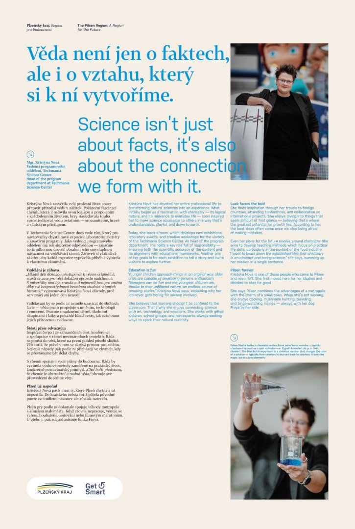 Na druhou stranu má ale Plzeňský kraj řadu inspirativních příběhů úspěšných dívek a žen, které se už vědě věnují. Široké veřejnosti je představuje značka inovačního marketingu GetSmart. Ženy z oblasti výzkumu, vývoje a inovací nechybí na jejích výstavách, v publikacích, na tematických akcích, jež se konají během celého roku.