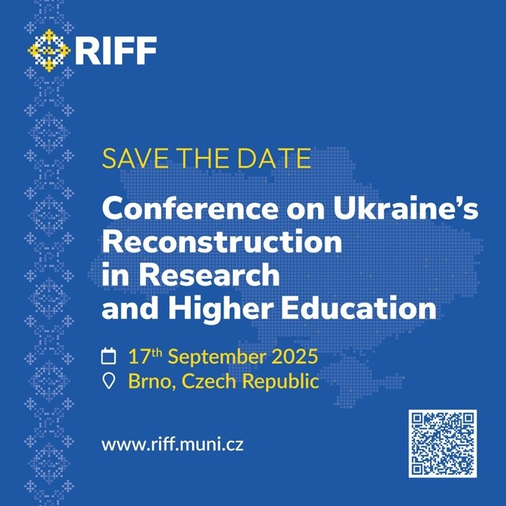 Masarykova univerzita v Brněorganizuje 17. 9. jednodenní mezinárodní konferenci v rámci projektu RIFF – Research Infrastructures for the Future of Ukraine, zaměřenou na roli výzkumu a vysokého školství při obnově Ukrajiny.