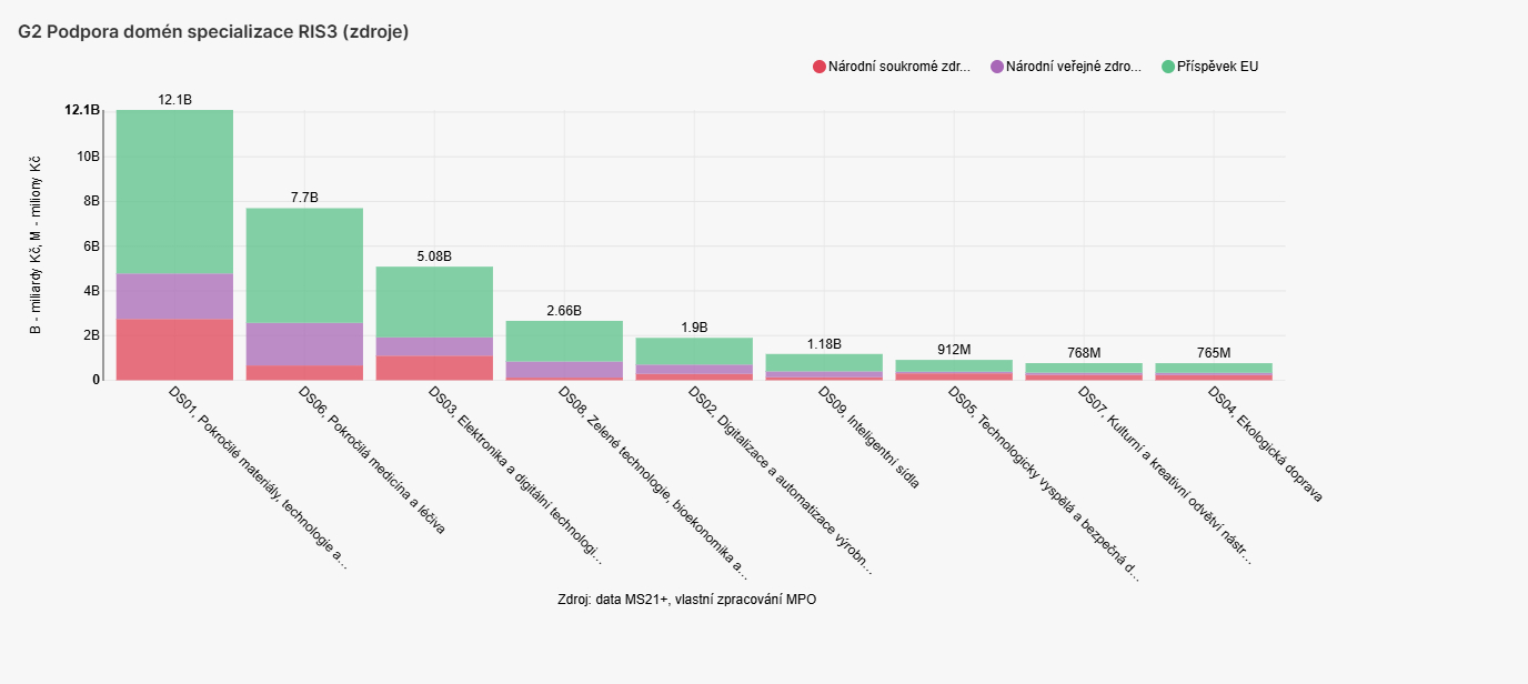 Oblast zelené technologie, bioekonomika a udržitelné potravinové zdroje (DS08) je podporována i z dalších operačních programů (OP TAK a OP JAK). DS08 patřila v období let 2021–2024 mezi čtveřici nejvíce podpořených domén. Celková podpora dosáhla hodnoty 2,66 mld. Kč (z toho: příspěvek EU 1,82 mld. Kč, národní veřejné zdroje 720 mil. Kč a národní soukromé zdroje 118 mil. Kč).