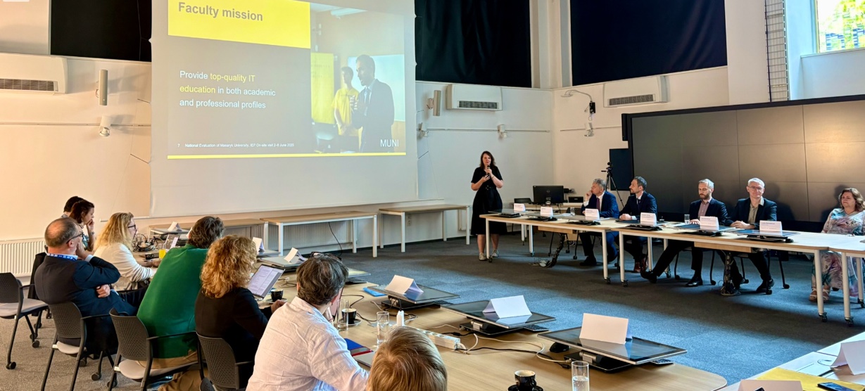 „Takže si to projedeme celé ještě jednou, ať víme, kdo koho v kolik hodin vyzvedne a kam odvede.” Každý z nás má před sebou papírovou plachtu s diagramem plným časových údajů, přesunů a kompetencí, který připomíná plán akce „Kulový blesk”. Je ráno, pondělí 2. června 2025, a ředitel Odboru výzkumu v pracovně na rektorátu Masarykovy univerzity naposledy rekapituluje plán návštěvy zahraničních expertů Mezinárodních evaluačních panelů ustanovených pro účel národního hodnocení vysokých škol.