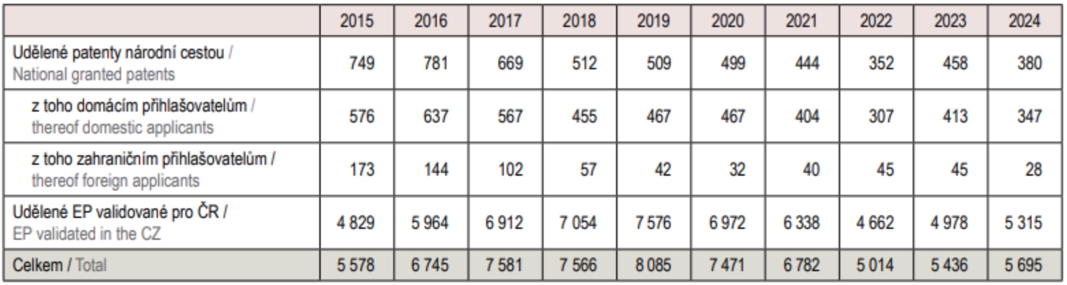 K patentům, které jsou pro území ČR uděleny národní cestou, tak přibývají i evropské patenty zde validované.