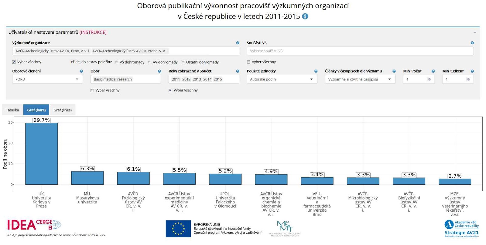 *Do FORD oboru Basic Medical Research jsou zařazeny tyto obory WoS: anatomy and morphology, chemistry, medicinal immunology, medicine research; experimental neurosciences, pathology, pharmacology and pharmacy, physiology, psychology, clinical toxicology