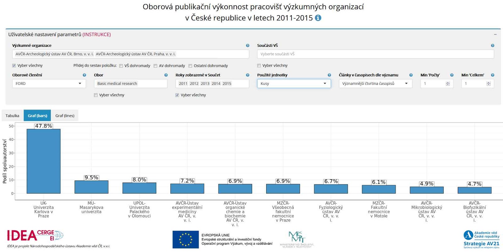 Roli spoluautorství ukáži na oboru Basic Medical Research*. Do této skupiny časopisů s vysokým AIS žádný lokální časopis myslím nespadá. Nedostatkem údajů v uvedené tabulce je, že nezohledňují autorské podíly organizací na článcích. Kus se počítá jako kus. A vliv autorství ze zpráv nezjistíme.