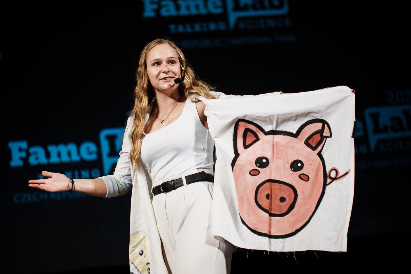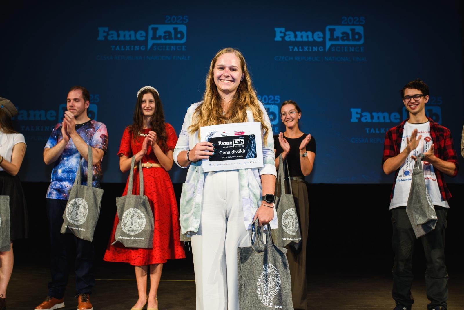 Přiznám se, že jsem o něm skoro nic nevěděla. Když jsem četla zvací e-mail, řekla jsem si: „Jé, to je pro ukecané lidi, tam se přihlásím.” (smích) Mám pocit, že občas je potřeba vystoupit z komfortní zóny, a něco podobného jsem v životě nezkoušela. Nikdy mě neposlouchalo tolik lidí. Řekla jsem si, že to zkusím – maximálně ze sebe udělám blbečka (smích). Velké lákadlo bylo také to, že v porotě zasedl pan Martínek, což je Vševěd ze soutěže Na lovu. Všichni jsme se chtěli dostat do finále, abychom se s ním mohli vyfotit (smích). V sále byly stovky diváků a nás finalistů bylo 12. Nejvíc bylo chemiků, biologů a dalších zástupců přírodovědných oborů. Tyto obory se asi hodí k popularizaci vědy nejvíce – v laboratořích jsme schovaní a lidé toho o nás moc neví.