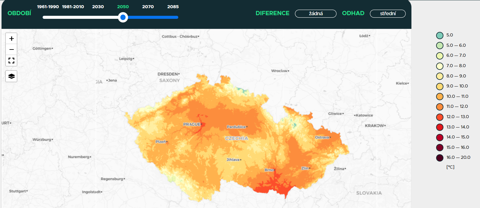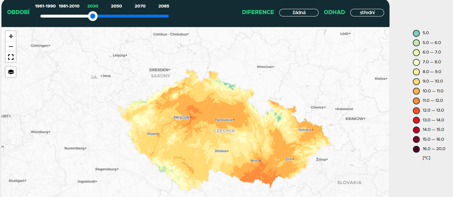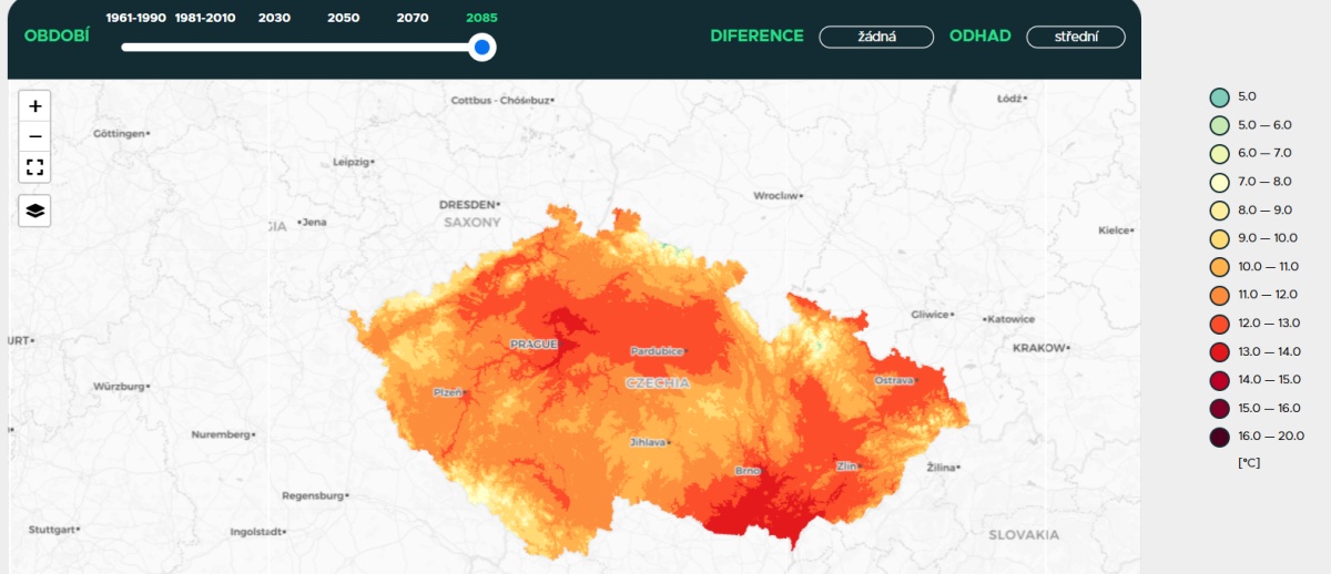 Jaké jsou poznatky o klimatické změně, jaké jsou její dopady a jaké se nabízejí možnosti jejich řešení, ukazuje přehledně inovovaný web Klimatická změna. Představuje podobu Česka až do konce tohoto století, jak ji vědci modelovali na základě naměřených dat a předpokládaného vývoje emisí skleníkových plynů v atmosféře. Jelikož vývoj jeho množství nelze přesně predikovat, nabízí web vizualizaci jak středního odhadu očekávané změny, tak i její méně pravděpodobné varianty.