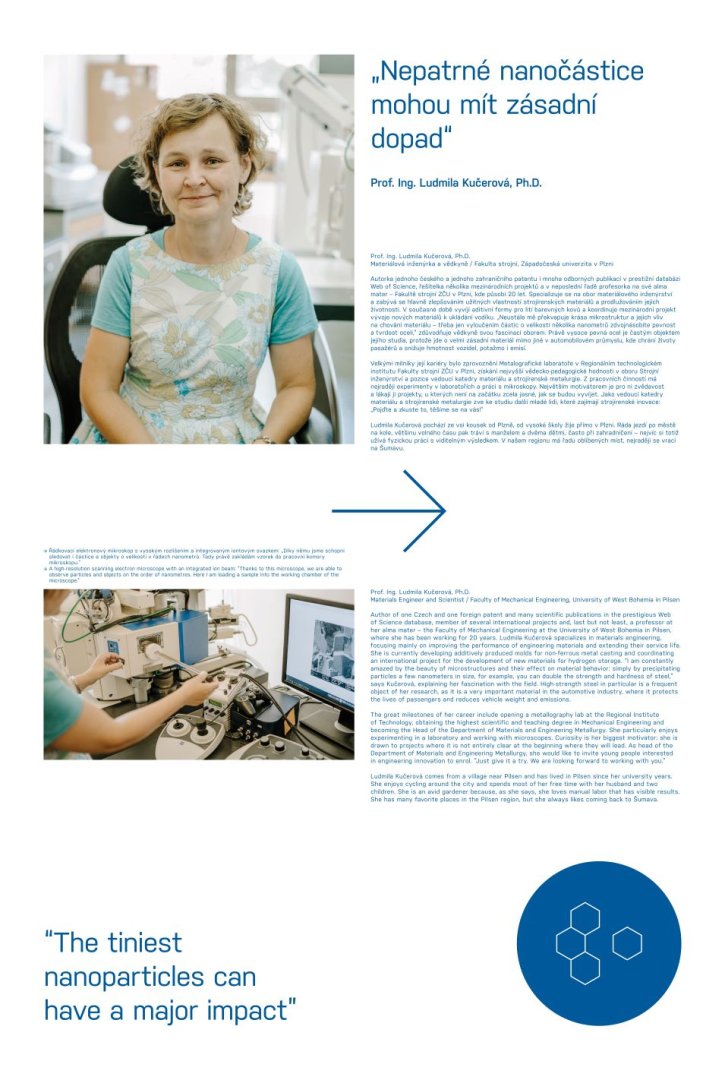 Kromě zmíněné Lucie Houdové tak mohou lidé znát například Ivanu Zetkovou, vedoucí Laboratoře kovové aditivní výroby Fakulty strojní ZČU, Annu Krebsovou z úspěšného studentského týmu LASAR, který vyslal do vesmíru vlastní družici a tím jeho práce rozhodně neskončila, nebo Lucii Vištejnovou z Biomedicínského centra a Ústavu histologie a embryologie Lékařské fakulty v Plzni Univerzity Karlovy, která vyvíjí a testuje nové materiály usnadňující léčbu různých zranění. S plzeňským pracovištěm Lékařské fakulty je mimochodem neodmyslitelně spjata i další výrazná vědecká osobnost, emeritní rektorka Univerzity Karlovy Milena Králíčková, jejíž specializací je léčba neplodnosti.