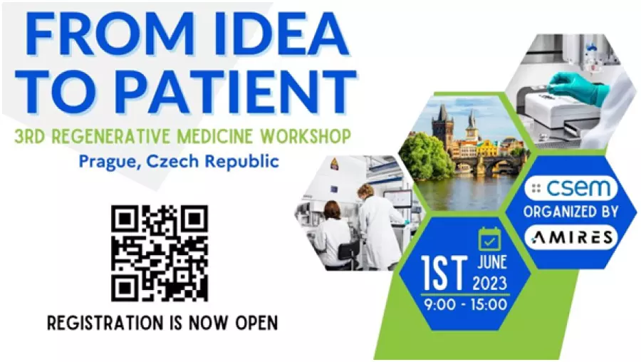 Společnost AMIRES a centrum CSEM společně pořádají již třetí workshop zaměřený na oblast regenerativní medicíny s podtitulem Od nápadu k pacientovi. Akce se bude konat 1. června 2023 v Praze.