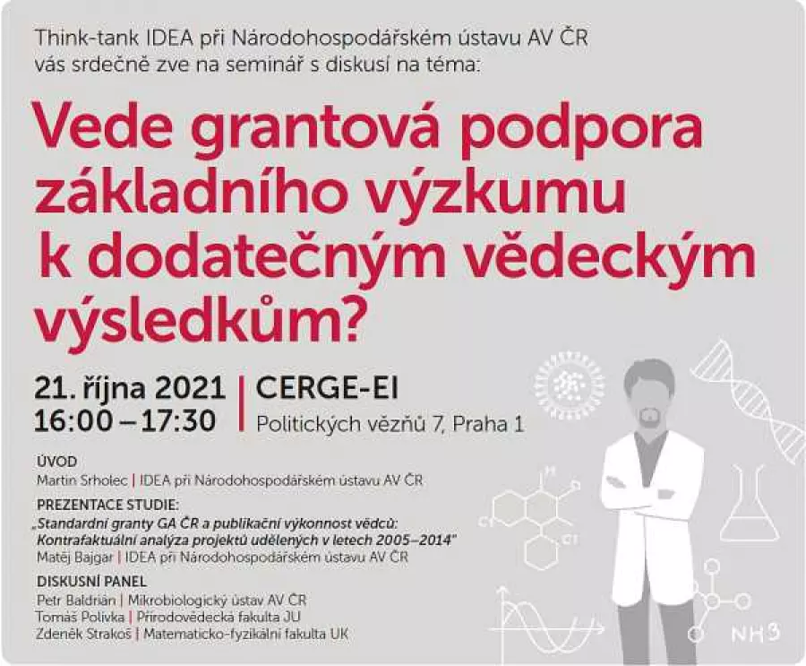 Dne 21. října 2021 proběhne od 16:00 do 17:30 seminář s názvem Vede grantová podpora základního výzkumu k dodatečným vědeckým výsledkům?
