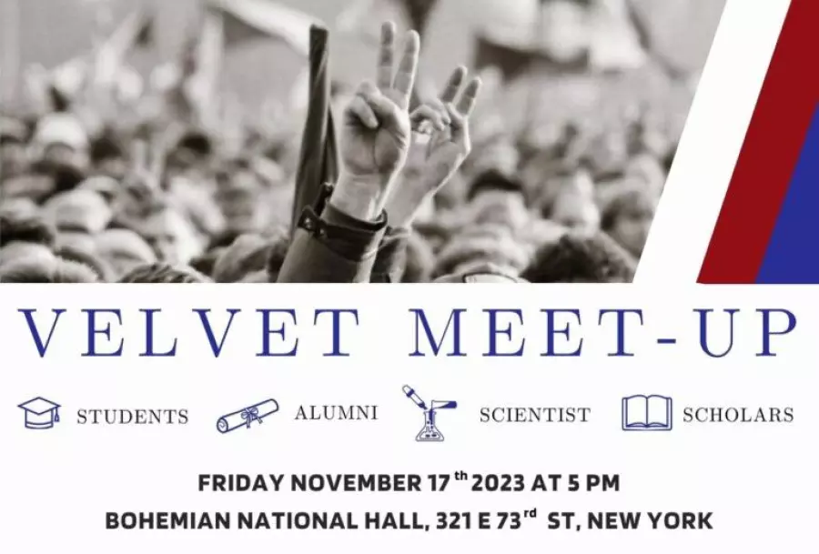 Ve spolupráci s Generálním konzulátem ČR v New Yorku, Univerzitou Karlovou a Kellner Family Foundation pořádáme 17. listopadu setkání českých vědců a vědkyň a studujících působících na východním pobřeží USA ,,Velvet Meet-Up“. Pozvání jako keynote přijal Hynek Wichterle (Columbia University). Po setkání proběhne koncert Rozálie Havlekové (registrace zvlášť).