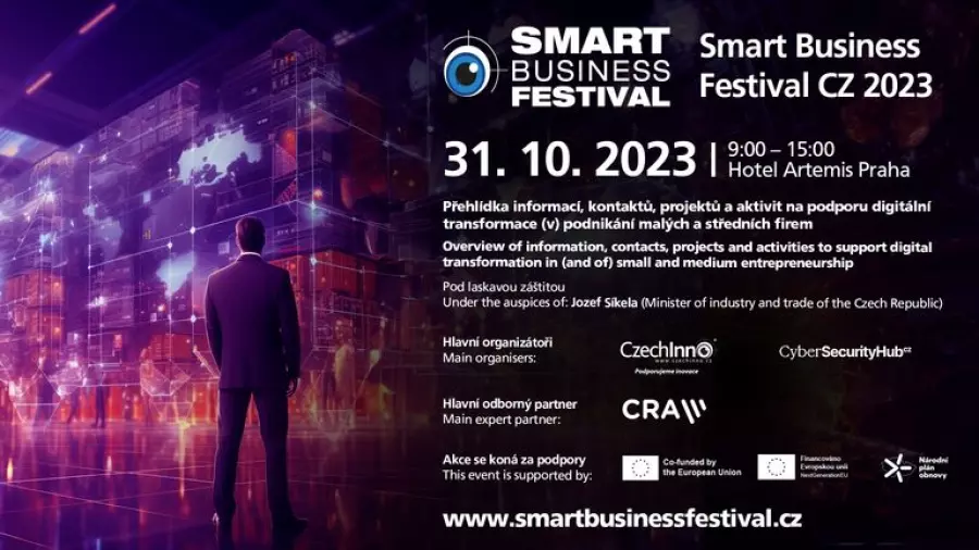 S novými projekty, technologickými novinkami a postupy v byznysu, které by mohly pomoci malým a středním firmám posunout se vpřed, účastníky seznámí již 9. ročník této akce - Smart Business Festival CZ 2023, který pořádá sdružení CzechInno v rámci aktivit EDIH Cybersecurity Innovation Hub. Hlavním partnerem akce jsou České Radiokomunikace, a.s.