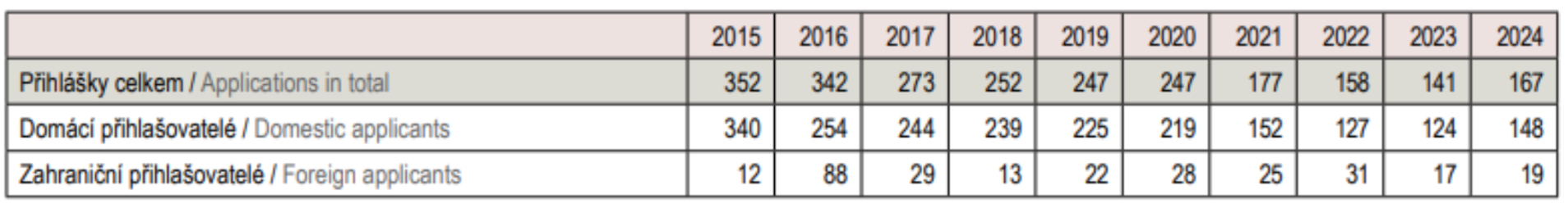 Abyste měli možnost pocítit, v jakém rytmu se ochrana duševního, resp. zejména průmyslového vlastnictví pohybuje v České republice, přinášíme na následujících řádcích informace o počtech přihlášek a registrovaných práv v minulém roce. Údaje vycházejí z Výroční zprávy Úřadu průmyslového vlastnictví za rok 2024, která byla nedávno zveřejněna.