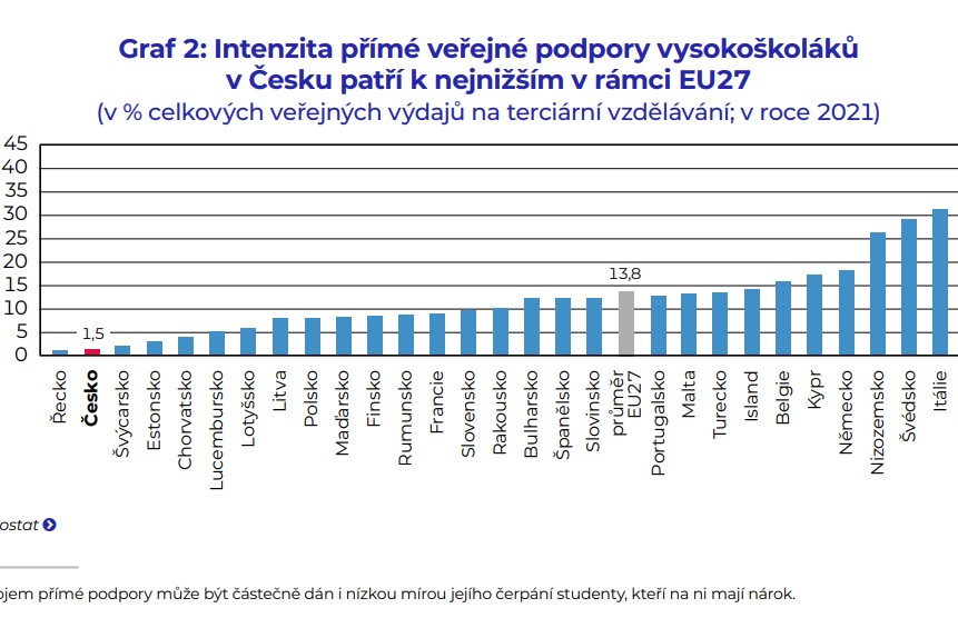 Systém finanční podpory vysokoškolských studentů v České republice je ve srovnání s většinou vyspělých zemí velmi slabý, špatně zacílený a jeho modernizace přehlížena, říká nová studie think-tanku IDEA při CERGE-EI. Popisuje slabiny českého systému, prezentuje návrhy jeho změn, a také shrnuje, co v tomto ohledu slibují programy politických stran a hnutí.