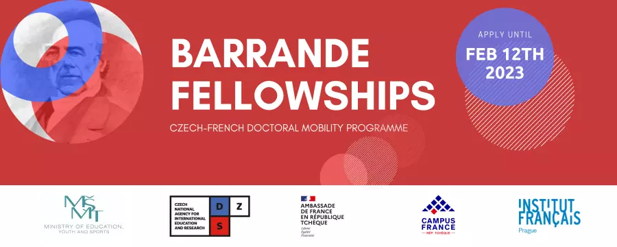 Velvyslanectví Francie v Praze ve spolupráci s Ministerstvem školství, mládeže a tělovýchovy ČR vyhlašují další ročník výzvy v programu Barrande Fellowships, který je určen na podporu mobility doktorandů mezi Českou republikou a Francií. Zájemci se mohou hlásit do 12. února 2023.