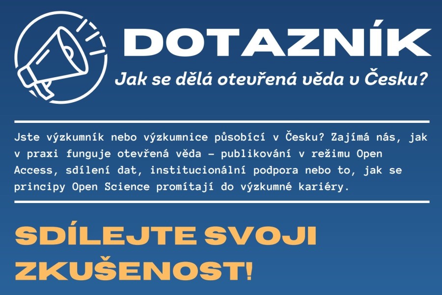 Zapojte se do krátkého anonymního dotazníku a pomozte zmapovat realitu otevřené vědy ve výzkumných organizacích v Česku. Vaše odpovědi pomohou identifikovat překážky i příležitosti pro lepší podporu výzkumníků.