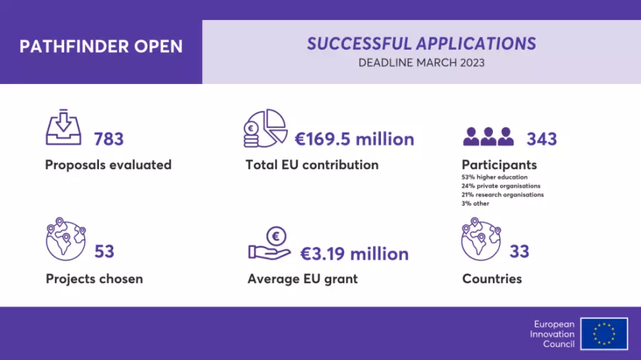 Evropská rada pro inovace (EIC) vybrala další sadu návrhů v rámci otevřené výzvy EIC Pathfinder 2023. 53 nových projektů obdrží dohromady až 169,5 milionu eur a bude vyvíjet špičkové technologie v celé řadě oblastí – zdraví, umělá inteligence, výpočetní technika, životní prostředí a energetika.
