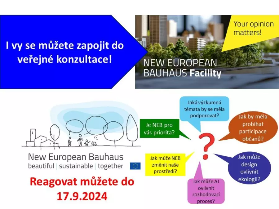 Do 17. 9. 2024 se můžete zapojit do veřejné konzultace k Novému evropskému Bauhausu. Evropská komise otevřela v létě veřejnou konzultaci k novému nástroji na podporu Nového evropského Bauhausu – NEB Facility. Nástroj je rozdělen na dvě části – složku výzkumu a inovací a složku zavádění do praxe.