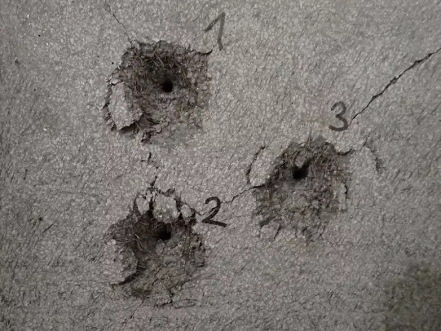 Balistický ochranný panel po testování 3 soustřelů do trojúhelníku - čelní strana | Autor: FCH VUT, Bogges