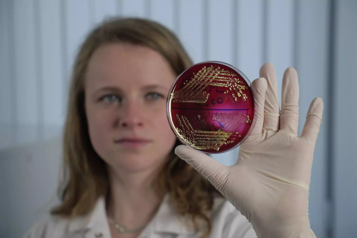 Petriho miska s mikrobiálními koloniemi připravená k dalšímu zpracování