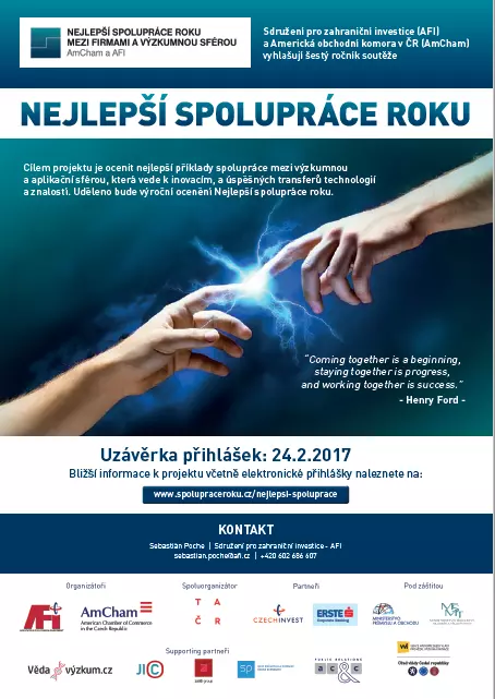 Soutěž uděluje ocenění v oblasti spolupráce mezi výzkumnou a aplikační sférou, která vede k inovacím. Pořádá ji Agentura pro zahraniční investice (AFI) a Americká obchodní komora v ČR ve spolupráci s Technologickou Agenturou ČR. Portál Vědavýzkum.cz je supporting partner soutěže. Uzávěrka přihlášek do šestého ročníku je již 24. února 2017.