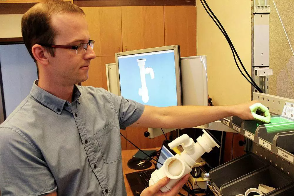 Na monitoru běží ve 3D pracovní postup zaměřený například na sestavení sifonu do umyvadel. Pracovník sleduje video s animovanou návodkou a současně se u jeho pracovní plochy dataprojektorem osvěcují zásobníky právě s těmi součástkami, které má pracovník v danou chvíli použít. Po každém kroku si ovladačem video posouvá. Tak se dá jednoduše popsat způsob, jak se pracuje s využitím virtuální animované 3D návodky odborníků z Fakulty strojní Západočeské univerzity.
