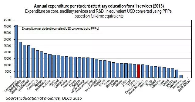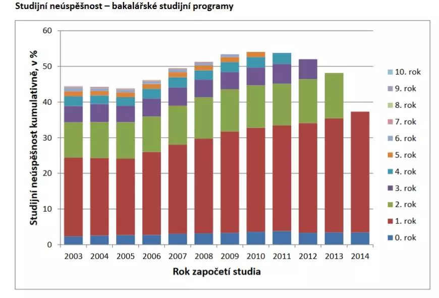 - Průměrná doba studia na našich VVŠ patří k nejvyšším v Evropě a stejně tak míra neúspěšného zakončování studií, která se dokonce dále zvyšuje, stát to školám vesele nadále financuje. Výdaje na studenta na rok se tak u nás jeví jako nízké, ačkoliv výdaje na jedno úspěšného absolventa jsou vysoké.