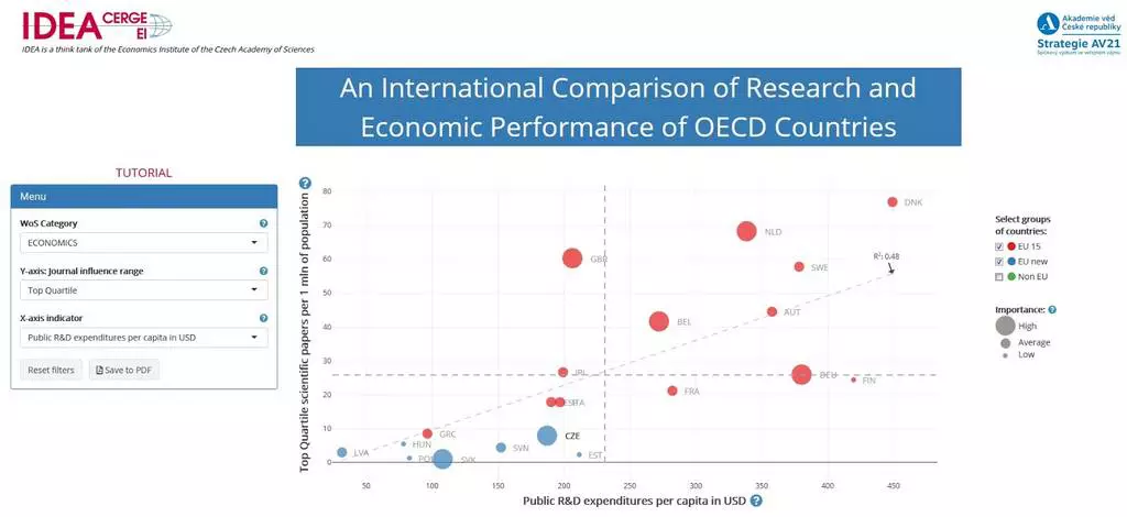 Aplikací zobrazované globalizační indexy však nevypovídají ani o publikační intenzitě, natož produktivitě, ani o významnosti a vlivu výzkumů dané země. Koho taková srovnání Česka vůči evropským zemím zajímají, musí použít jiné aplikace IDEA. Jednou je mezinárodní srovnaní ekonomického a publikačního výkonu zemí a druhou je mezinárodní srovnání publikačního výkonu a jeho významu.