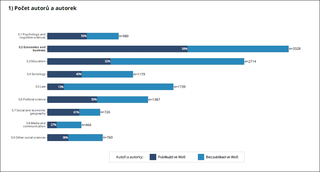 Zbývá nám tedy počty vědců v oborech odhadovat na základě počtu autorů vědeckých publikací, kde jsou uvedeny i jejich afiliace. Zde jsme odkázáni na databáze vědeckých časopisů a článků v nich, protože ty jediné jsou dnes dostatečně pokryty databází WoS nebo Scopus. Musíme si tedy nechat zajít chuť v oborech, kde se výrazněji publikuje i v knihách (humanitní vědy a řada společensko-vědních). A také si musíme uvědomit, že časopisecké publikace moc nepokrývají výzkum aplikovaný a vývoj. Pokud je mi známo, ale mohu se mýlit, tak jediným zdrojem mezinárodně srovnatelných informací o personální velikosti oborů je naše IDEA aplikace. I tam je však třeba údaje o počtech vědců na úrovni oborů považovat jen za hrubé odhady.