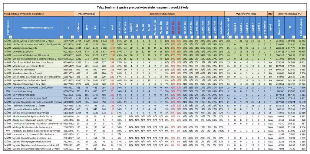 Obrázek 1: Souhrnná zpráva z Hodnocení'17 vědy na vysokých školách pro MŠMT