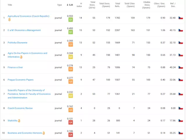 Ve výše uvedené tabulce vidíme kvartilové postavení (podle SJR indexu) v Česku vydávaných ekonomických časopisů (Scopus). Dva z nich, Zemědělská ekonomika a E + M Ekonomie a Management už to dokonce díky své velmi nestandardní citační praxi dotáhly až do kvartilu prvního (na světě!) - tedy mezi světovou elitu, kde je sláva publikovat i pro nobelisty. Skutečnost je ovšem taková, že masové publikování článků v těchto mezinárodně nevýznamných a někdy dokonce podivných časopisech už léta tuneluje rozpočet veřejné podpory společenskovědního výzkumu u nás. Uvažme, že jen v těchto pouhých čtyřech českých časopisech v prvním a druhém kvartilu (výše viz Q1 a Q2) vyjde za pět let zhruba 1 000 článků. I kdyby jeden článek v nich vynesl v průměru 15 bodů, dělá to zhruba částku 30 milionů korun veřejné podpory ročně (za pět let 150 mio), a to pouze ve formě institucionální podpory výzkumu. Jen pro srovnání, na společenské vědy (SHVc) kafemlejnek posílá zhruba 280 mil. Kč ročně.