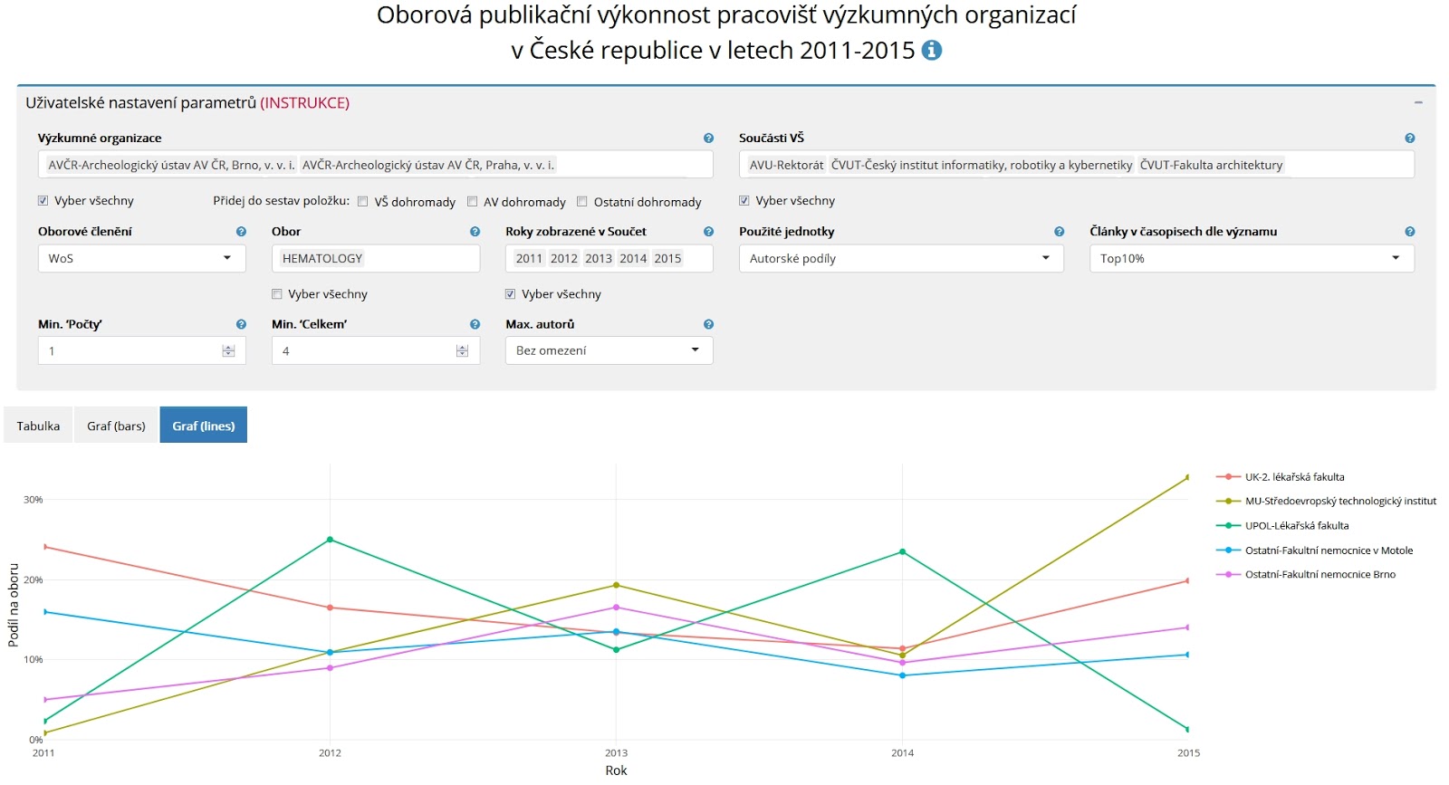 Ve finále jsem ještě nahlédl do aplikace IDEA, která ukazuje publikační výkon českých vědeckých pracovišť. Po zadání zřejmě klíčového oboru MM 'Hematology' se ukázalo, že jeho CEITEC na Masarykově Univerzitě vykazuje druhý nejvyšší podíl na publikačním výkonu České republiky v horních deseti procentech nejvlivnějších oborových časopisů 13,6 % (jde o 6.6 článků za pětileté okno 2011- 2015). Před ním je pouze 2. lékařská fakulta Univerzity Karlovy s podílem o něco málo větším 16,8 %. Je mimochodem zajímavé, že špičkový publikační výkon v tomto oboru je v Česku poměrně rovnoměrně rozdělen mezi delší řadu pracovišť. Jde především o fakultní nemocnice a medicínské fakulty, tedy kromě CEITEC a Ústavu molekulární genetiky AV ČR. Za pozornost také stojí rostoucí publikační podíl CEITEC v posledním roce 2015. Nakolik je to právě i díky publikacím MM by se člověk musel v datech více vrtat.