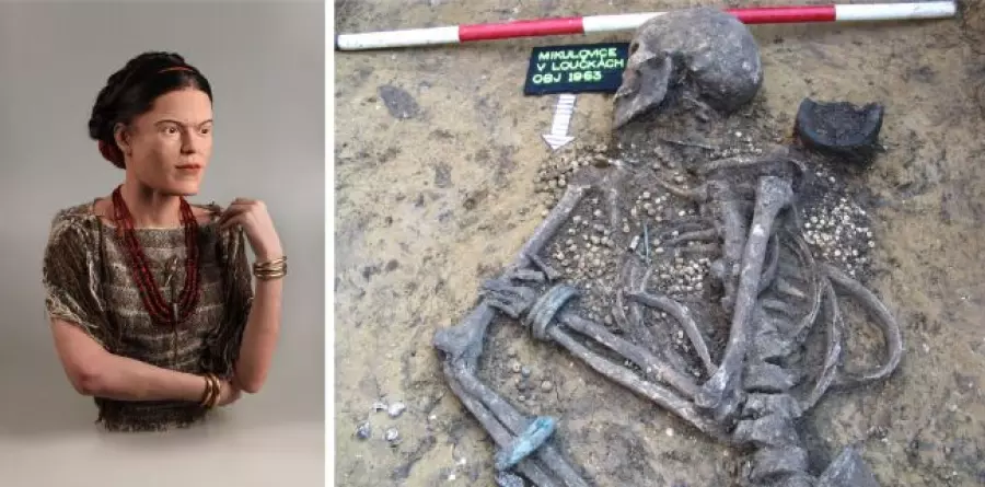 - Podobenka ženy od Pardubic: hnědé vlasy, světlá pleť, hnědé, široko od sebe posazené oči, výrazná brada, drobnější postava. Ne, nejde o policejní popis hledané osoby, jedná se spíše o opačný případ – to vše se na základě DNA podařilo zjistit badatelům z nalezených kosterních ostatků v Mikulovicích u Pardubic. Žena pohřbená před čtyřmi tisíci lety zemřela ve věku kolem 35 let a pocházela z vyšší společenské vrstvy starší doby bronzové, což dokládá pět bronzových náramků, tři bronzové jehlice, dvě zlaté záušnice, a především nádherný třířadý jantarový náhrdelník složený z více než 400 korálků.