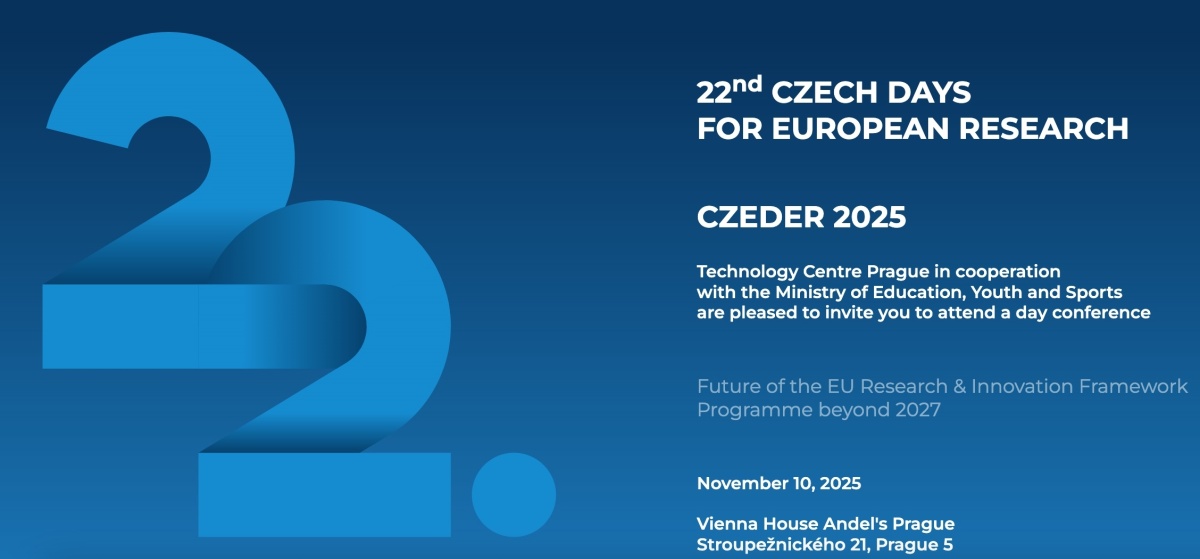 Letošní ročník konference České dny pro evropský výzkum (CZEDER) se uskuteční 10. listopadu v Praze! Akci tradičně spoluorganizují Technologické centrum Praha a Ministerstvo školství, mládeže a tělovýchovy. Tématem letošní konference bude podoba rámcového programu pro výzkum a inovace po roce 2027. Aktuality, program akce a registrace budou v dohledné době publikovány na stránce konference.