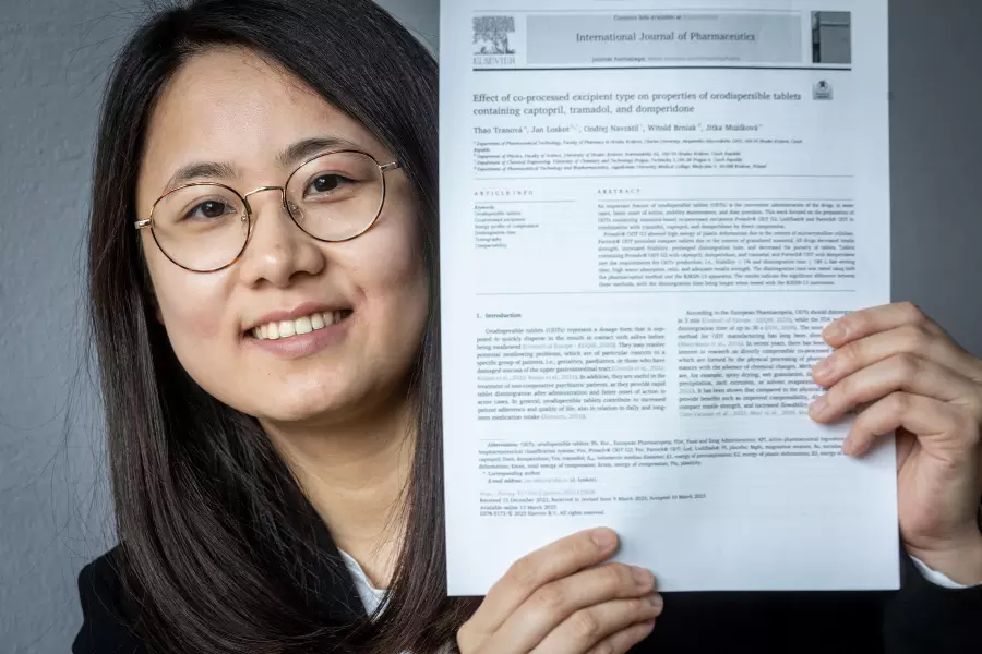 Vedle své vědecké práce působí také v lékárně a od starších pacientů slýchala, jak špatně se jim některé tablety polykají. Proto se ve výzkumu zaměřila na tablety dispergovatelné v ústech. Thao Tranová z Farmaceutické fakulty UK je hlavní autorkou článků publikovaných v prestižních mezinárodních časopisech a držitelkou ceny The Parc Awards v kategorii Student Choice Award.