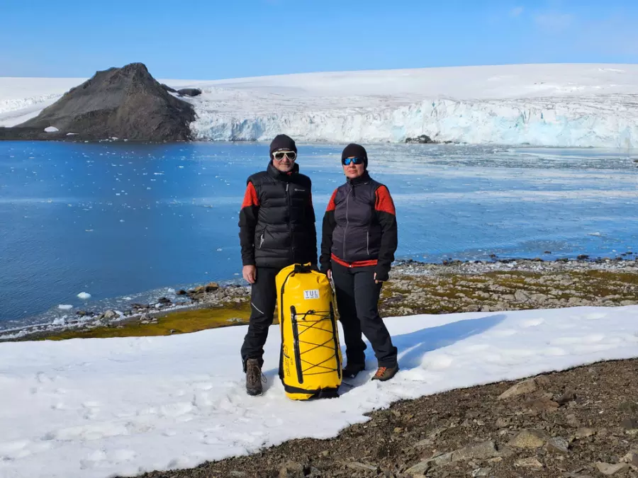 Pedagogové Fakulty umění a architektury TUL Vladislav Bureš a Dagmar Vojtíšková byli v týmu letošní expedice brněnské Masarykovy univerzity na Nelsonův ostrov. Foto: archiv Dagmar Vojtíškové
