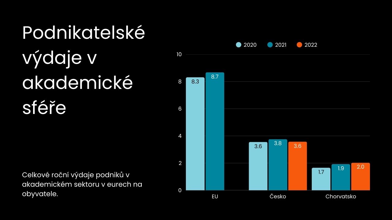 Chorvatsko má přibližně 3,5krát méně výzkumných pracovníků než Česká republika, ačkoli jeho populace je pouze 2,8krát menší. To naznačuje, že vědecká kariéra v Chorvatsku stále není dostatečně atraktivní. Zajímavé je srovnání zapojení obou zemí do programu Horizont Evropa, kde Chorvatsko jen zřídka vystupuje jako hlavní řešitel projektů. To může odrážet nedostatečnou kapacitu pro podávání žádostí nebo absenci excelentních projektů aplikovaného výzkumu, ale při znalosti chorvatské vědy bych zdůraznil to první. To se naštěstí pravděpodobně změní, protože EU klade větší důraz na zázemí pro země rozšíření, jako je Chorvatsko.
