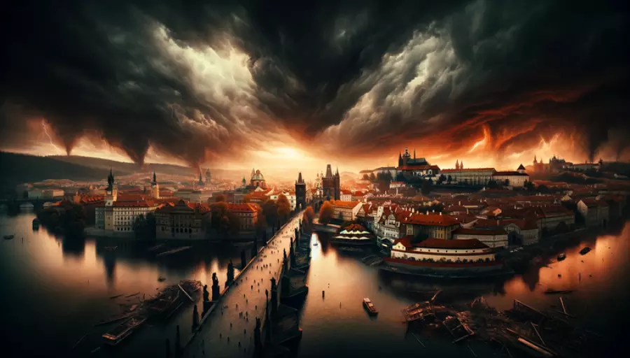 Apokalyptická vize Prahy vytvořená umělou inteligencí