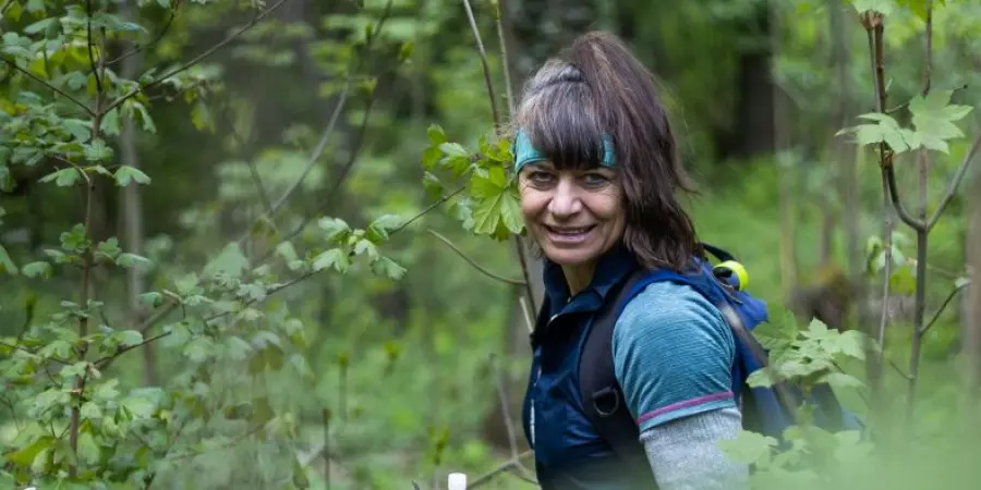Alena Žákovská při sběru klíšťat v terénu.