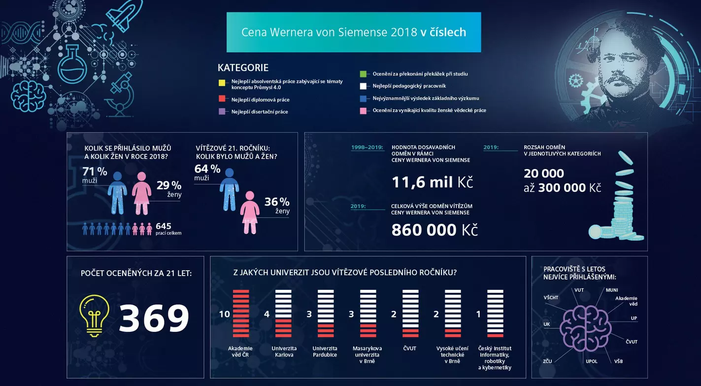 Ve čtvrtek 28. února 2019 ocenila společnost Siemens vítěze letošního ročníku Cen Wernera von Siemens, která se řadí mezi nejvýznamnější nezávislé iniciativy tohoto druhu v České republice. A to nejen tradicí a rozsahem, ale i výší odměn, které se mezi výherce rozdělují. Letos studenty a pedagogy podpořila jedním milionem korun.