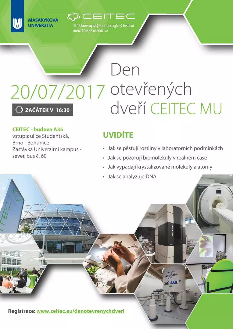 Těšíme se na vás ve čtvrtek 20. července 2017 od 16:30, v prostorách univerzitního kampusu Bohunice, budova A35 CEITEC v ulici Studentská.