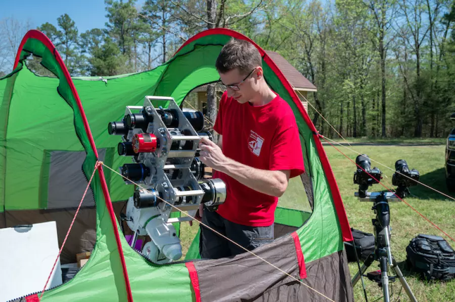 Do zatmění zbývá necelých pět dní. Jsme na soukromém pozemku, vybíráme si místo pro pozorování na vyvýšené části a stavíme dva stany – v jednom bude pět montáží, se kterými budou pracovat Matěj Štarha, Vašek Široký a Jakub Moravec. Ve druhém stanu jsou dva kolegové z University of Hawaii se spektrometrem. Kde budu já s Petrem Štarhou, je stále nejasné, sledujeme předpověď počasí a zprávy o tom, jak celá Amerika šílí a obrovské davy se přesouvají do pásu totality. Majitelka usedlosti říká, že je v médiích doporučováno zásobit se jídlem a nesnažit se kamkoli jezdit, protože se čekají obrovské zácpy. Kvůli pár kabelům zajeli kolegové do nedalekého města Mount Ida a vrátili se nejen s věcmi, které potřebovali, ale také s tričky a koláčem s nápisem 04. 08. 24., ve městě to prý vypadá na hodně velkou akci. Koláč si necháváme na den zatmění.