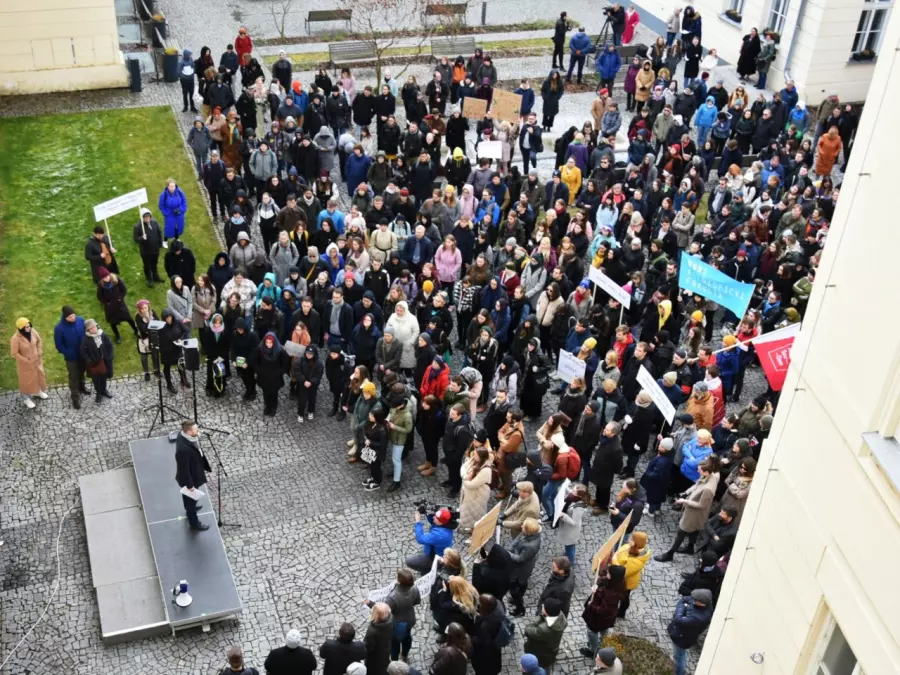 Protestní shromáždění na nádvoří Filozofické fakulty Univerzity Palackého v Olomouci, Zdroj: Univerzita Palackého v Olomouci
