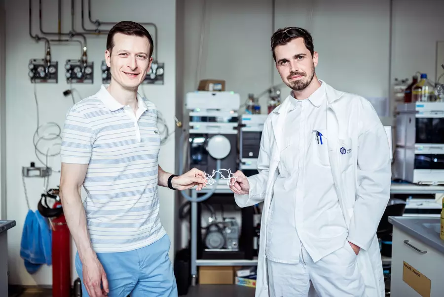 Klíčovou roli hrají molekulární konstrukce, do nichž je možné zabudovat atomy lanthanoidů na přesně definovaná místa. „V naší skupině pracujeme s chelátory, což jsou molekuly, které umí vázat ionty kovů a uzavřít je do sebe jako do klece. My jsme tyto molekulární klece s uzavřeným kovem propojili prostřednictvím aminokyseliny. Navíc jsme k nim připojili další část, která v magnetickém poli funguje jako vysílač, jehož frekvence se odvíjí od toho, jaké kovové ionty se v daném řetězci vyskytují, a v jakém pořadí,“ vysvětluje člen týmu Jan Kretschmer z ÚOCHB a student Přírodovědecké fakulty UK.