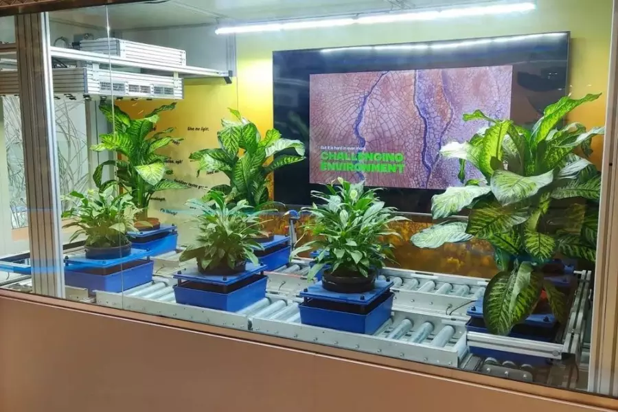 Na tvorbě výsledného konceptu expozice se spolupracovalo se studiem STEEZY, které se pak postaralo i o následnou realizaci. Návštěvník expozice je vtažen do děje pomocí velké obrazovky, která se nachází za fenotypizačním zařízením a ze které k němu promlouvá zkoumaná rostlina. Rostlina se snaží návštěvníkům vysvětlit svůj zásadní význam pro život na Zemi a chce je motivovat, aby se snažili rostlinám více porozumět. Rostlina upozorňuje na globální výzvy, které se týkají jich i změn klimatu a které budou mít zásadní dopad i na celé lidstvo. Rostlina se snaží o navázání dialogu s návštěvníky z celého světa a naznačuje, že řešení nastíněných problémů leží právě v komunikaci a porozumění rostlinám. A právě věda a technologie nyní dávají možnost porozumět potřebám rostlin a zvou návštěvníky, aby nahlédli do fascinujícího světa rostlinného výzkumu.