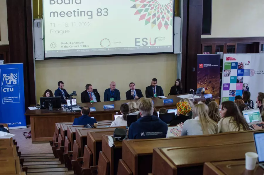 V Praze nyní probíhá v pořadí již 83. valné shromáždění Evropské studentské unie (ESU), jež je zastřešující organizací 45 národních svazů studentů ze čtyřiceti zemí a zastupuje přes dvacet milionů studentů napříč Evropou. Uskupení reprezentuje názory studentů na jednáních Evropské komise a Evropského parlamentu a ovlivňuje politiku Evropské unie.