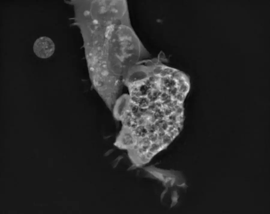 Naegleria fowleri atakuje lidskou buňku. Autor: Ronald Malych