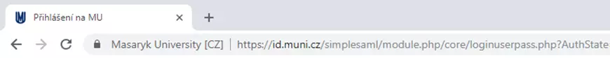 Na Masarykově univerzitě navíc funguje systém jednotného přihlášení. V drtivé většině případů tak budete heslo zadávat do formuláře jednotného přihlášení na doméně id.muni.cz. Tato doména navíc používá tzv. certifikát s rozšířeným ověřením. Prohlížeč tedy kromě zámečku vždy zobrazí i identitu organizace, v našem případě „Masaryk University [CZ]“.