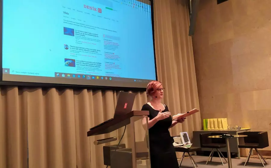 Lenka Vrtišková Nejezchlebová na konferenci Komunikace vědy. Foto: Pavla Hubálková