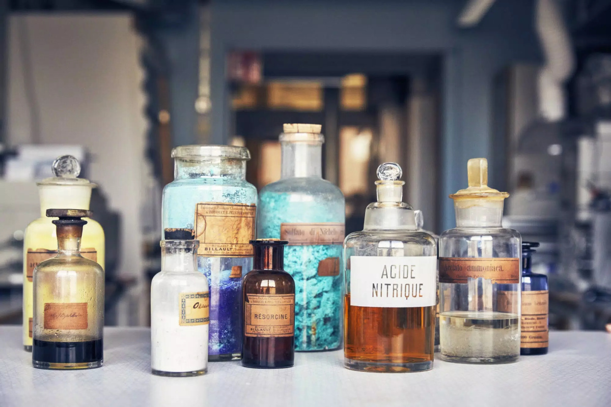 Staré lahve, které byly použity v laboratořích Alfreda Nobela v Muzeu Nobelovy ceny / Foto: Dan Lepp