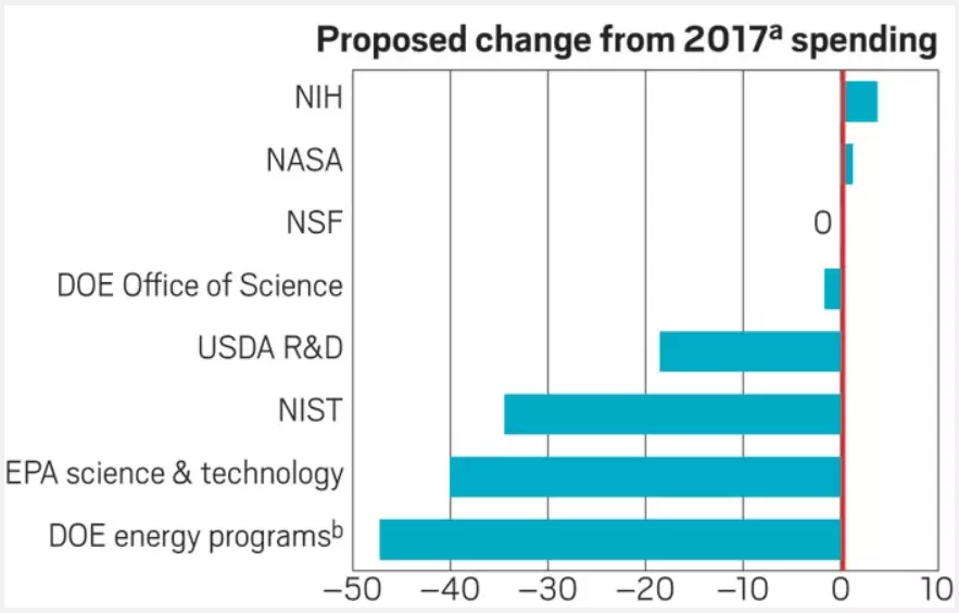 V únoru předložil Donald Trump svůj návrh rozpočtu na rok 2019, jehož finální verze není takovou katastrofou pro oblast VaV, jakou mohla být. Předtím, než kongres schválil vyšší limity pro rozpočet na další rok, měl americký prezident v plánu škrty, které by znamenaly pokles prostředků určených pro VaV o více než 20 %. Vládní agentura National Science Fundation měla dokonce obdržet částku menší o 29 %.
